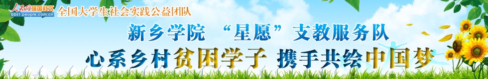“星愿”義務支教服務隊于2009年成立,現有支教志愿者120余名。除多次開展暑期社會實踐支教活動外,在校期間他們還堅持每周二下午赴貧困小學義務支教活動。五年來,他們參與支教的次數達100余次,9000余小時課時。他們與新鄉市紅旗區平原小學、封丘縣潘店鎮老莊小學建立了長期幫扶關系,還在延津縣榆林鄉大榆林小學、夾堤小學建立了愛心支教服務基地。