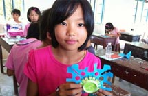 7月14日上午,湛師教科院團委“幸福紅領巾”服務隊在雷州烏石鎮三教小學舉辦了以“綠動,循環再用”為主題的環保創意設計大賽。 通過讓孩子們自己動手,將廢棄物品做成工藝品和工藝美術畫,激發他們的生態環保創意,提高環保意識。