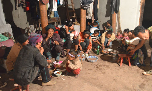 對于偏遠(yuǎn)山區(qū)的貧困與落后,雖然隊(duì)員們早有心理準(zhǔn)備,但實(shí)際到了兩河口鎮(zhèn),當(dāng)?shù)仄D苦的條件還是遠(yuǎn)遠(yuǎn)超出了這群在大城市里生活慣了的年輕人的想象。沒有網(wǎng)絡(luò),白天斷電,有時為了發(fā)送一條短信打一個電話需要走很遠(yuǎn)的路才會有信號。飲食也是一大挑戰(zhàn),實(shí)踐隊(duì)的伙食是清一色的土豆,而且一天只有兩頓土豆,這是當(dāng)?shù)氐牧?xí)俗。沒有桌子,所有人就在地上吃,沒有筷子就用手。煮的土豆吃膩了就吃烤土豆,扒皮后蘸點(diǎn)調(diào)料,吃得滿嘴滿手黑乎乎的。對于這樣的飲食方式,隊(duì)員們一開始的確不適應(yīng),覺得有點(diǎn)落后和不衛(wèi)生,但面對彝家人的熱情好客,隊(duì)員們也就入鄉(xiāng)隨俗,和彝家人一起享用起大山里的土豆來。為了感謝隊(duì)員們的付出,彝家人偶爾也會給隊(duì)員們做蕎麥餅換換口味。