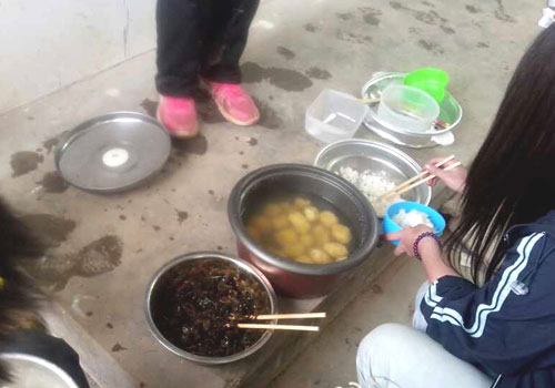 實(shí)踐隊(duì)員的午飯:咸菜絲、水煮土豆、米飯