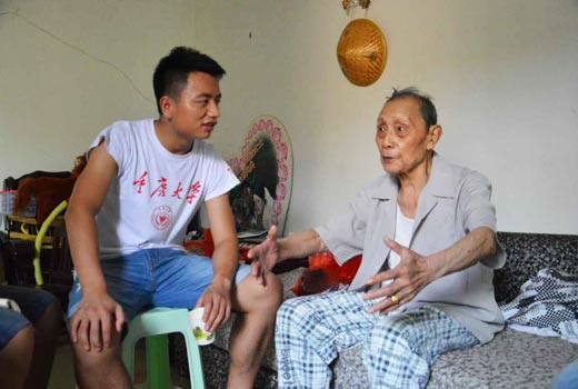 7月16日,重慶大學電氣學院“三下鄉(xiāng)”團隊的志愿者們來到了抗戰(zhàn)老兵黃德昌的家中進行尋訪活動。黃德昌老人今年已經(jīng)90歲了,他17歲參軍,曾參加抗日戰(zhàn)爭、抗美援朝,解放戰(zhàn)爭。