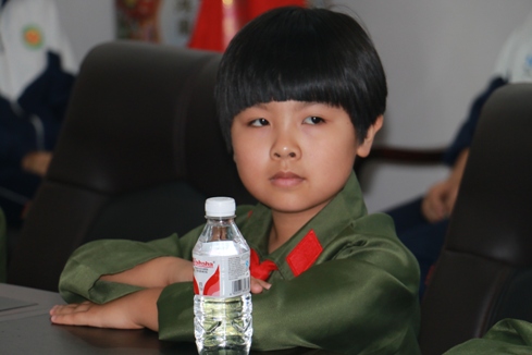15日上午,著名黨史專家薛慶超在遼寧本溪縣為中小學(xué)生上生動(dòng)抗戰(zhàn)歷史課。圖為課堂上認(rèn)真聽講的小學(xué)生。(陸加杰 攝)