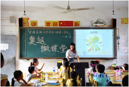 中南民族大學的實況小組志愿服務隊到貴州從江縣貫洞鎮龍圖小學支教,針對當地留守兒童上了一堂精彩的奧運微課堂,并組織開展了龍圖小學趣味運動會,將奧運理論與實踐相結合,傳遞奧運精神。