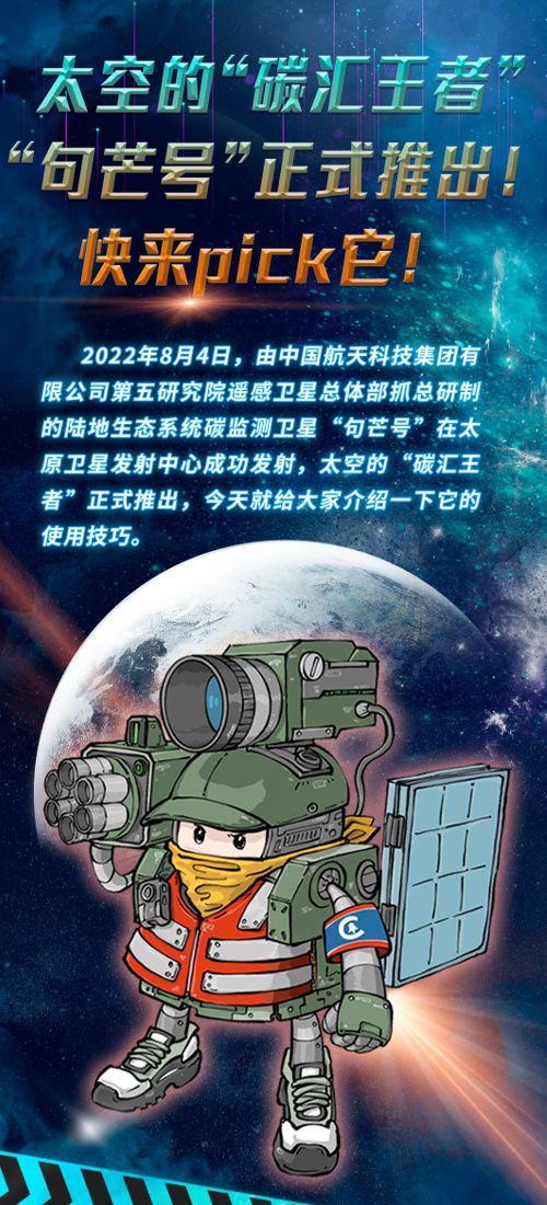 句(gōu)芒,是中國古代民間神話中的木神、春神、東方之神,主管樹木的發芽生長。以它命名的衛星“句芒號”,是世界首顆森林碳匯主被動聯合觀測的遙感衛星,能夠實現對森林植被生物量、氣溶膠分布、葉綠素熒光的高精度定量遙感測量,是太空的“碳匯王者”。